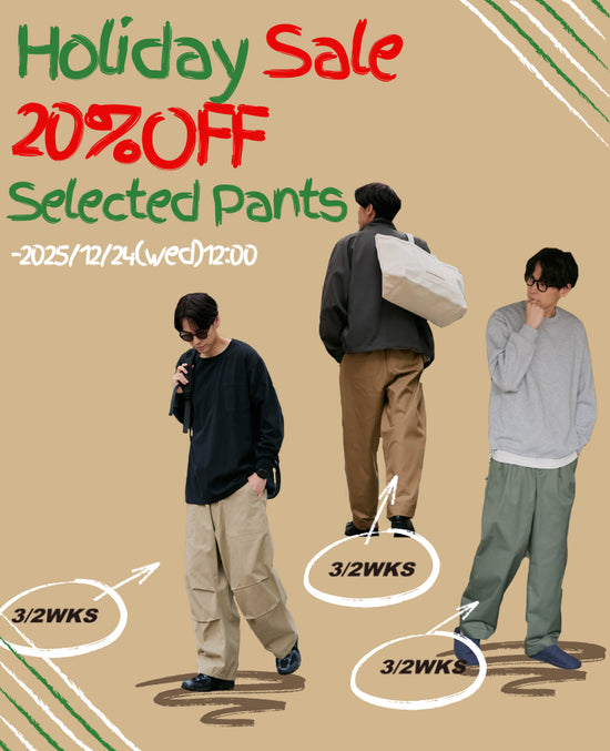 ■上品さと実用性を兼ね備えた2タックのワイドチノパンツ■ ■デザイン 程よくハリのあるツイル生地を使用した、2タック仕様のユーティリティトラウザー。腰まわりにゆとりを持たせつつ、ストンと落ちるシルエットが特徴。ワークテイストをベースにしながらも、無駄を削ぎ落としたデザインで、スニーカーにはもちろん、レザーシューズやブーツにも合わせやすいです。スウェットやフリースでカジュアルに、シャツやブルゾンで都会的にも着こなせる一本。秋冬のワードローブに加えたいアイテム。 ■3/2WORKS(スリーツーワークス) 3/2WORKS(スリーツーワークス)は、ワークウェアの機能性と洗練されたデザインを融合したブランド。オンでもオフでも快適に過ごせる、ハイスペックなデイリーウェアを提案します。 ■着用サイズ モデル身長:180cm French Khaki:XL Olive:L Charcoal:L ■取扱注意・洗濯時色落ちしますので他のものと必ず分けて洗ってください。・蛍光増白剤配合の洗剤は使用しないでください。・漂白剤及び漂白剤入りの洗剤は使用しないでください。・洗濯が終わったらすぐに洗濯機から取り出し、干す際は形を整えて、吊り陰干ししてください。・この製品の特性上、着用中の摩擦や汗などにより色落ちすることがありますのでご注意ください。・白い衣服など淡い色と重ねて着用された場合や、白・ベージュなどの淡い色のハンドバッグや、淡色のソファー・シート・ベルトなどにも色移りがすることがあるのでご注意ください。・ご購入されたら1度洗濯してから着用することをおすすめします。・強い日光又は照明を長時間受けますと変色する恐れがありますので、着用及び保管の際は、十分にご注意ください。