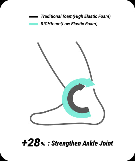 발목은 중심이동을 위해 매우 중요한 관절이다.RICHfoam은 마치 모래 위에서 훈련하는 것과 유사한 효과를 준다.바닥의 충격은 흡수하여 피로감과 부상 위험성은 낮추고, 발목 인대는 강화할 것이다.