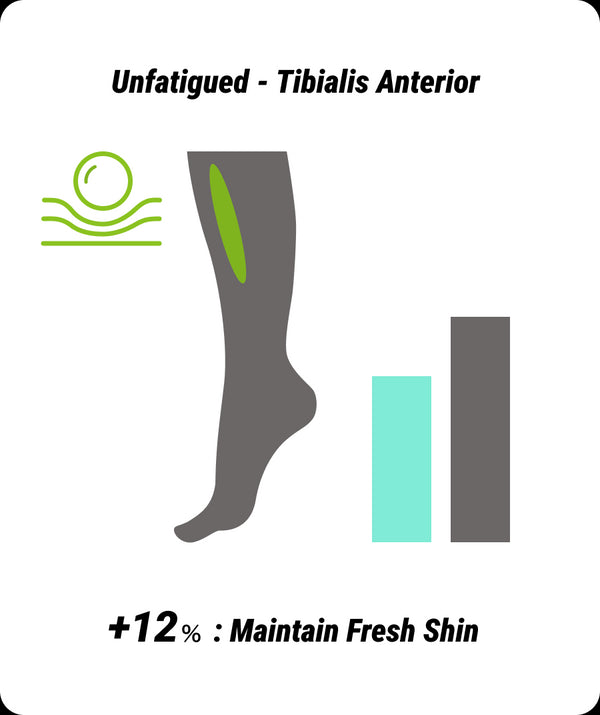 すねの前の筋肉は、足の柔らかい着地のための重要な役割であり、疲れたら歩き方が崩れます。RICHfoamはこの筋肉の新鮮度を12%長くします。