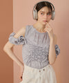 スナップボタンでフリルの位置を変えれば、肩に華やかさをプラスしたり、二の腕をカバーしたり、クロスさせてデザインにボリュームを持たせることも可能!